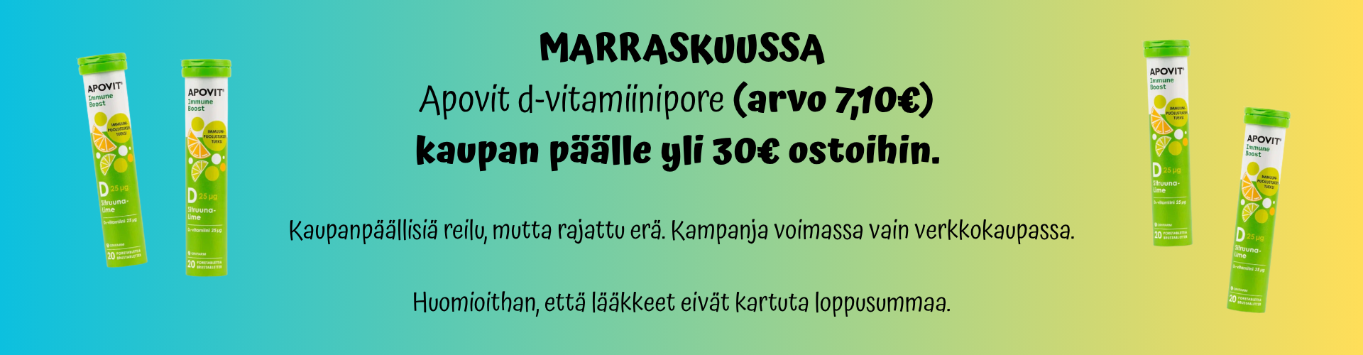 Om du behöver information för livsmedel, ta kontakt med oss för info (vehkojan.apteekki@apteekit.net).